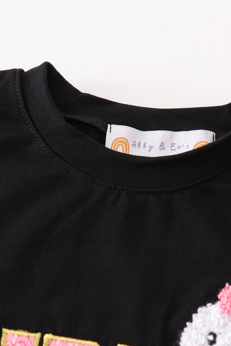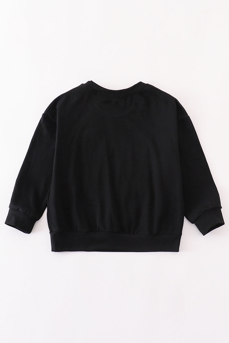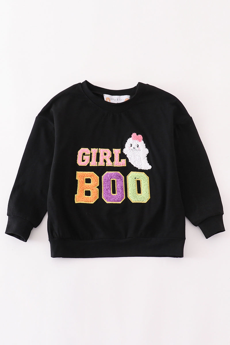 Get spooky this Halloween with our black chenille patch top for both mom and girl! With a playful "BOO" design, this top adds a touch of fun to any costume or outfit. Made with soft chenille material, it's both comfortable and stylish. Double the fun with this matching mom and girl top!