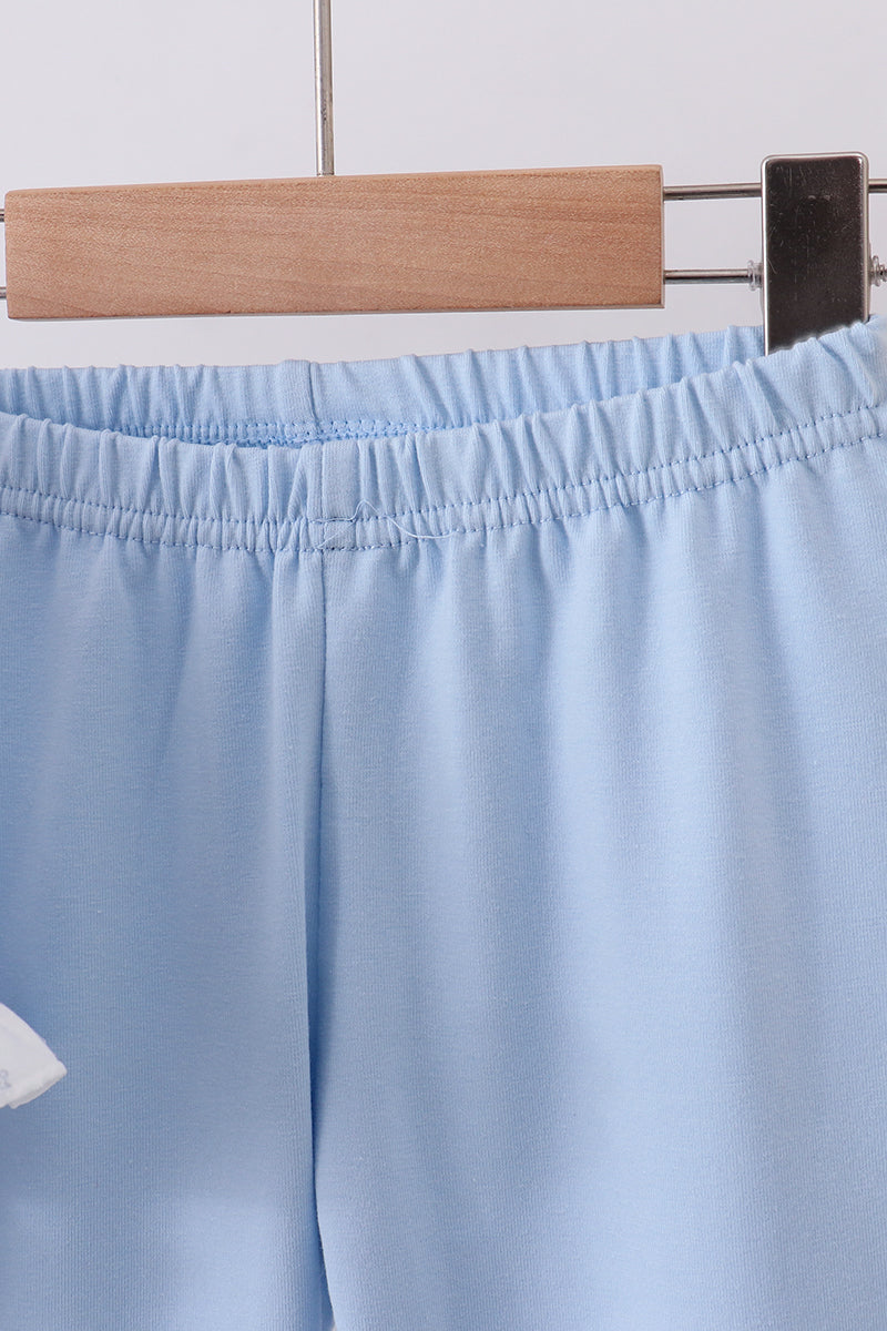 Twirl into style with this adorable blue bow floral smocked ruffle pants set! Featuring delicate floral prints and charming bow details, this two-piece ensemble combines comfort with cuteness. The smocked waistband ensures a perfect fit, while ruffled pants add a playful touch that's perfect for playdates, parties, or everyday adventures. Soft, breathable fabric keeps little ones comfortable all day long. A must-have for any child's wardrobe!