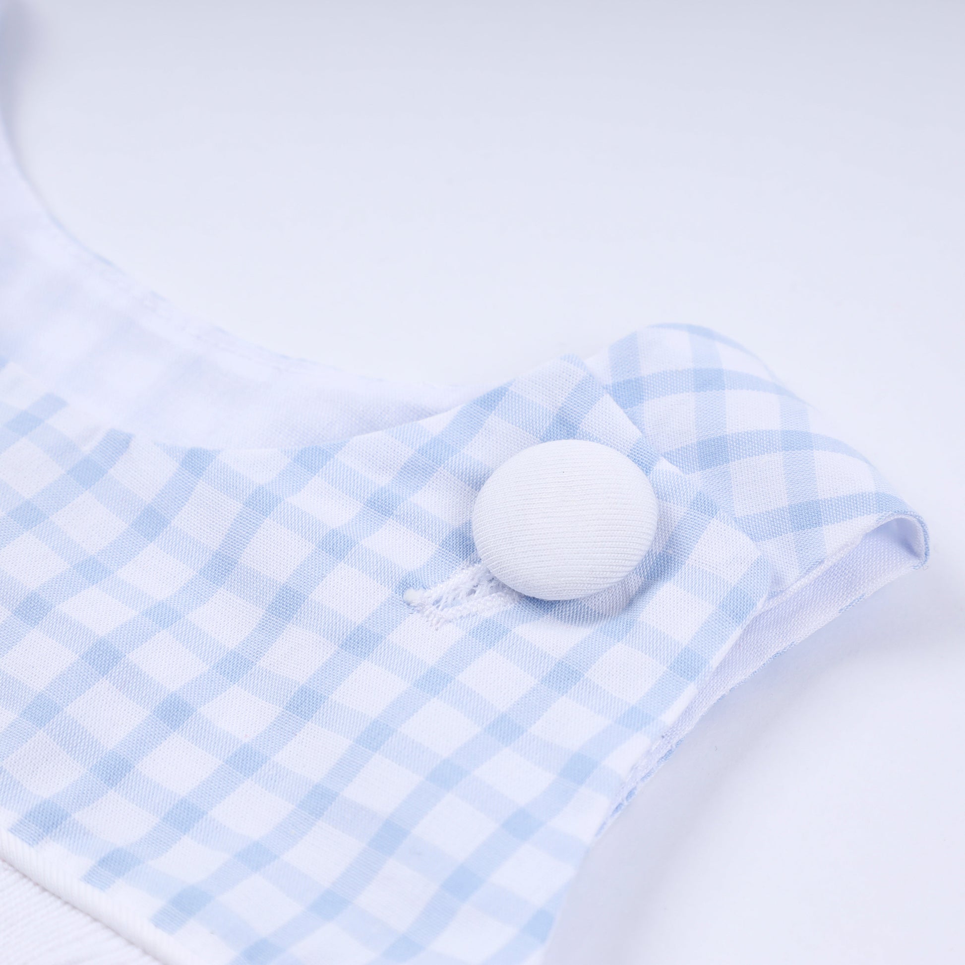 Adorable bubble romper featuring a charming character design set against classic gingham checks. Hand-smocked detailing adds texture and vintage-inspired appeal, while the relaxed bubble silhouette keeps little ones comfortable and stylish. Perfect for playdates, family outings, or everyday wear. The soft blue palette complements any wardrobe, making this a versatile piece that parents and kids will love.