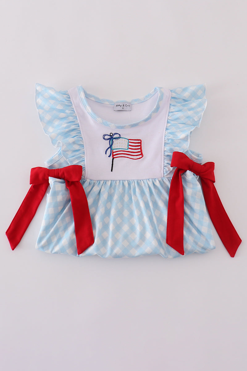 Get your little one ready for a day of fun in the sun with our Blue Flag Embroidery Bow Gingham Ruffle Shorts Set! Featuring charming blue flag embroidery and playful ruffles, this set will have your kiddo looking stylish and feeling comfortable. Perfect for any occasion, from picnics to playdates.