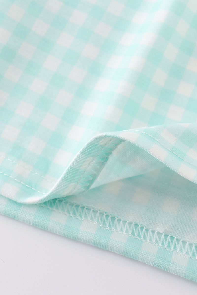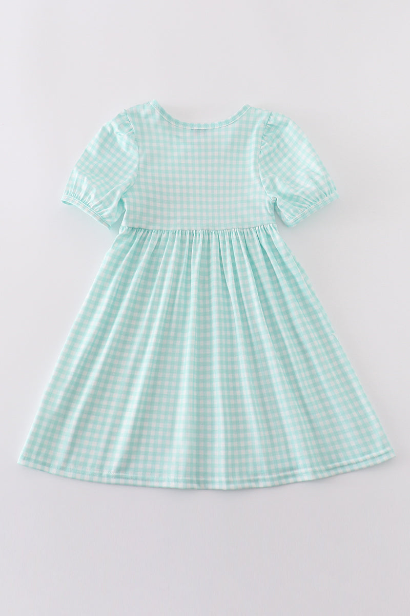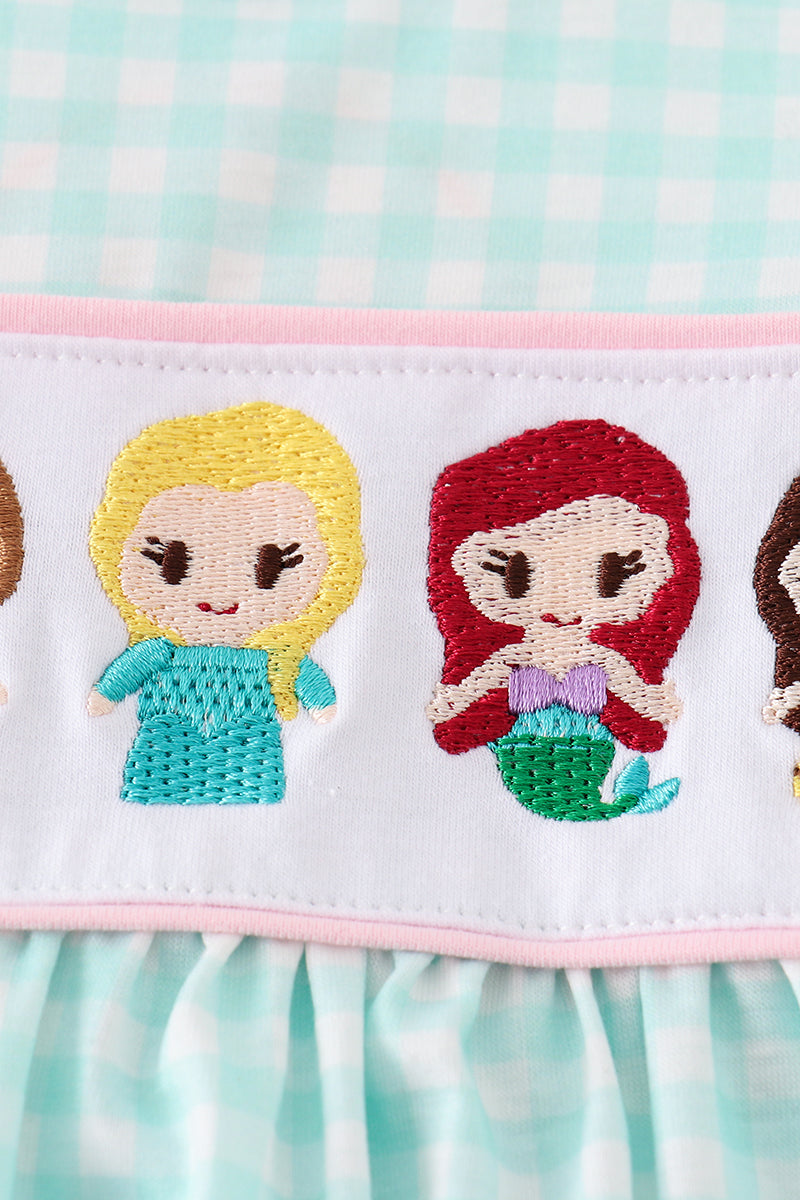 Blue princess embroidery girl gingham dress