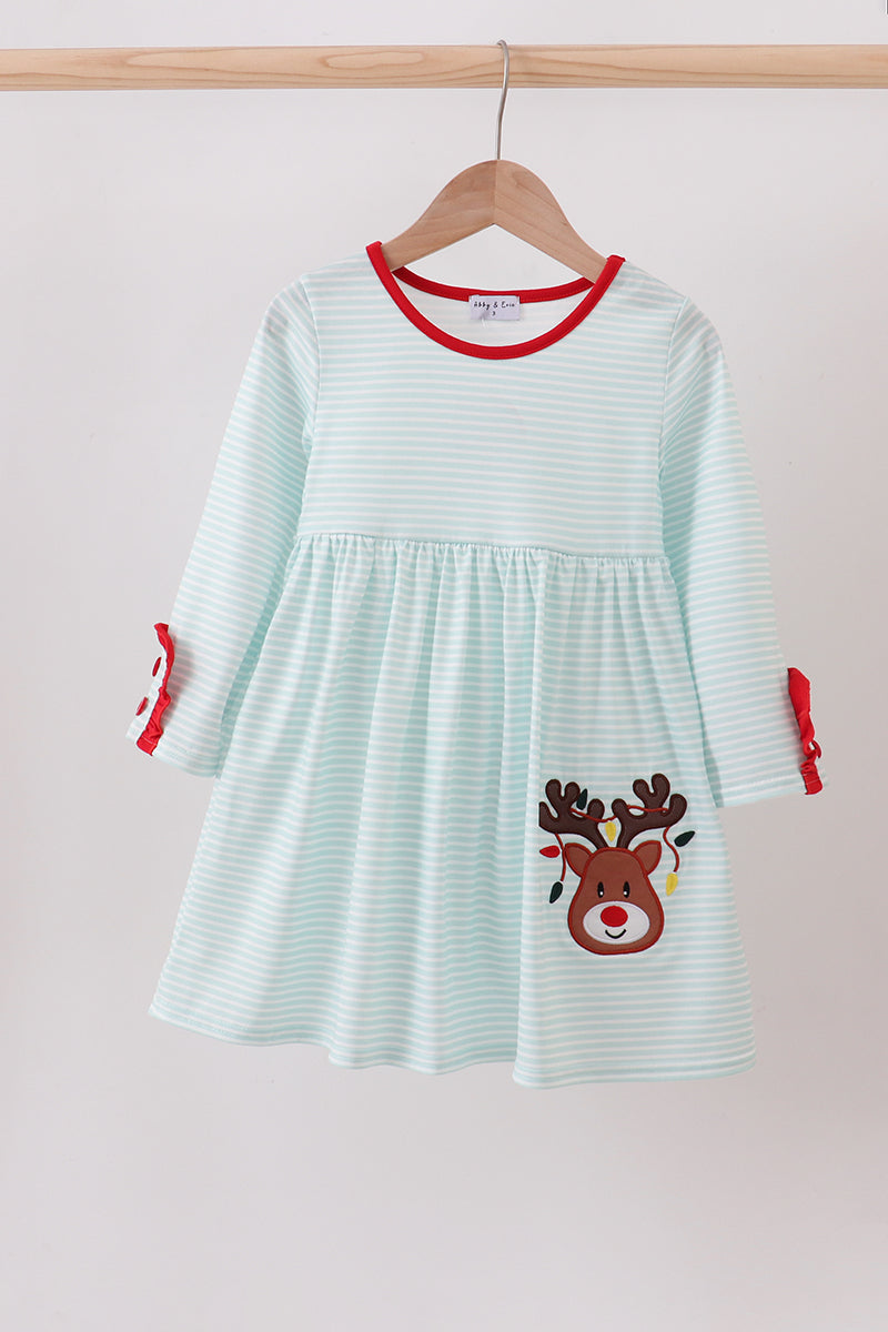 Bring festive fun to any occasion with this playful blue dress featuring charming reindeer appliques and classic stripes. Its soft fabric ensures comfort all day, while the whimsical design adds a touch of holiday cheer to your little one’s wardrobe. Perfect for parties or cozy winter days!