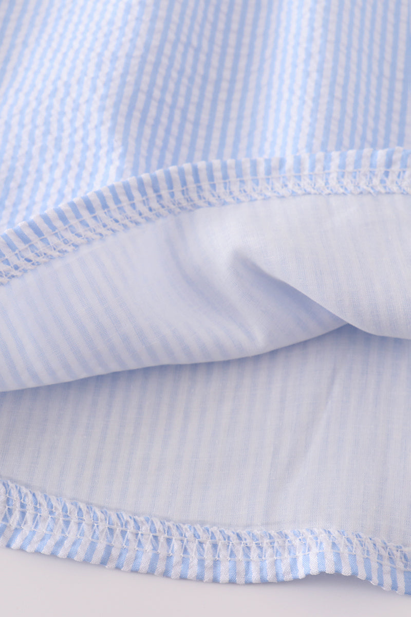 Blue seersucker crab embroidery smocked dress