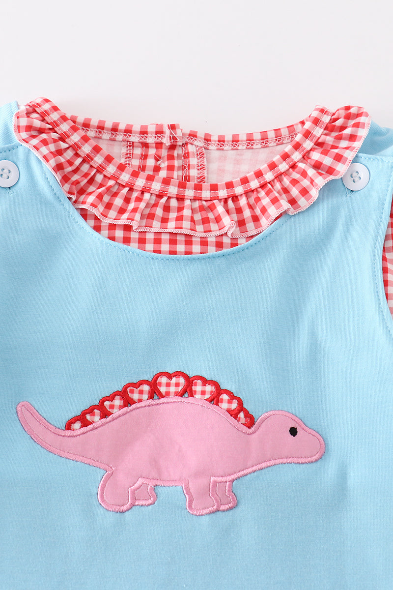 Get your little one ready for Valentine's Day with this adorable Blue Valentine Dinosaur Applique Girl Dress Set. With its playful dinosaur applique and cute heart pattern, this set is perfect for any quirky and fun-loving child. Let your little one stand out with this unique and charming dress set.