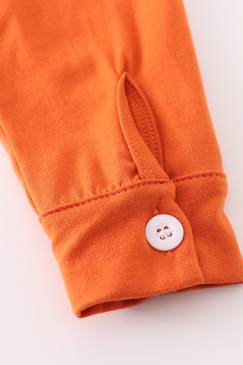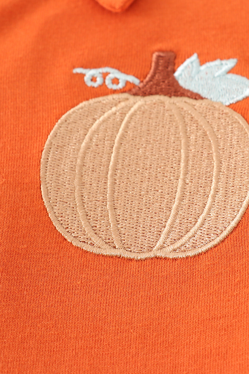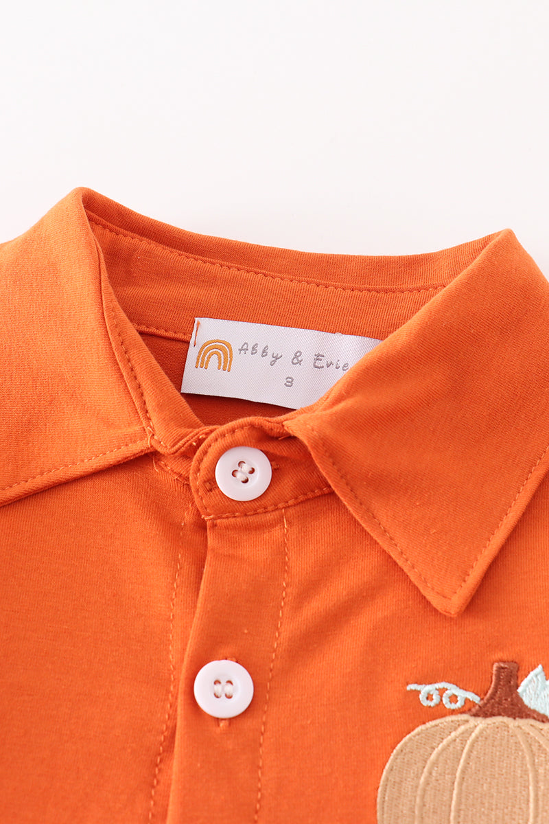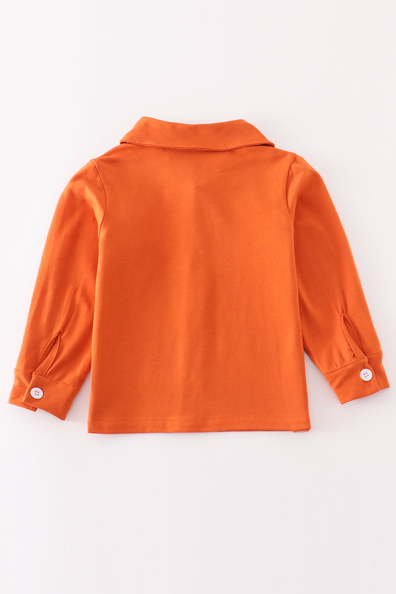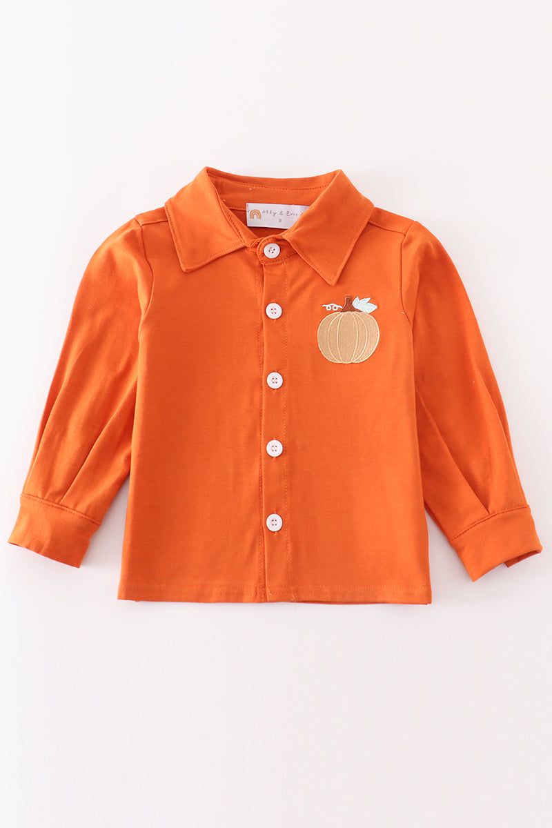 Get into the autumn spirit with our Brown Pumpkin Embroidery Boy Shirt. This playful and quirky shirt features a cute pumpkin embroidery that will make your little one stand out. Perfect for fall festivities and everyday wear. (No tricks, just treats!)