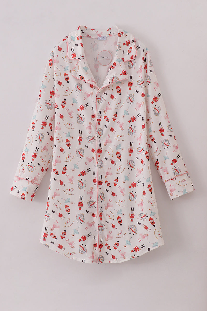 Celebrate the holidays in style with our Christmas nutcracker print women gown! This festive and playful gown features a charming nutcracker print, perfect for spreading holiday cheer. Made of soft, comfortable material, this gown is the perfect addition to your Christmas wardrobe.