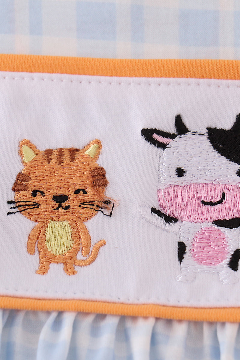 Farm embroidery girl plaid dress