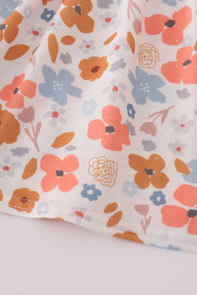 Floral print smocked ruffle pants set