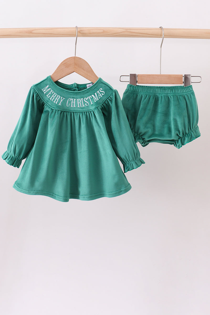 Celebrate the holidays in cozy style with the Forest Merry Christmas Embroidery Bloomer Set. Featuring charming seasonal embroidery, this playful outfit adds festive cheer to your little one's wardrobe while providing comfort and easy movement. Perfect for holiday gatherings or photos, this set brings merry vibes wrapped in soft, breathable fabric for all-day fun and smiles.