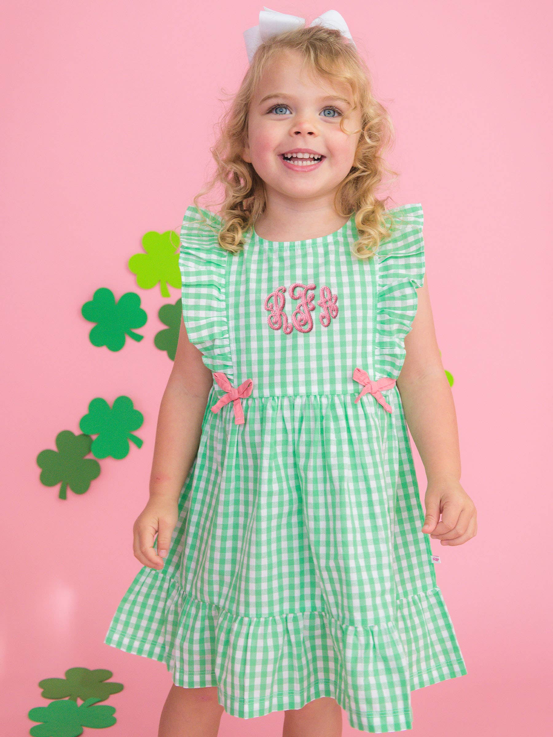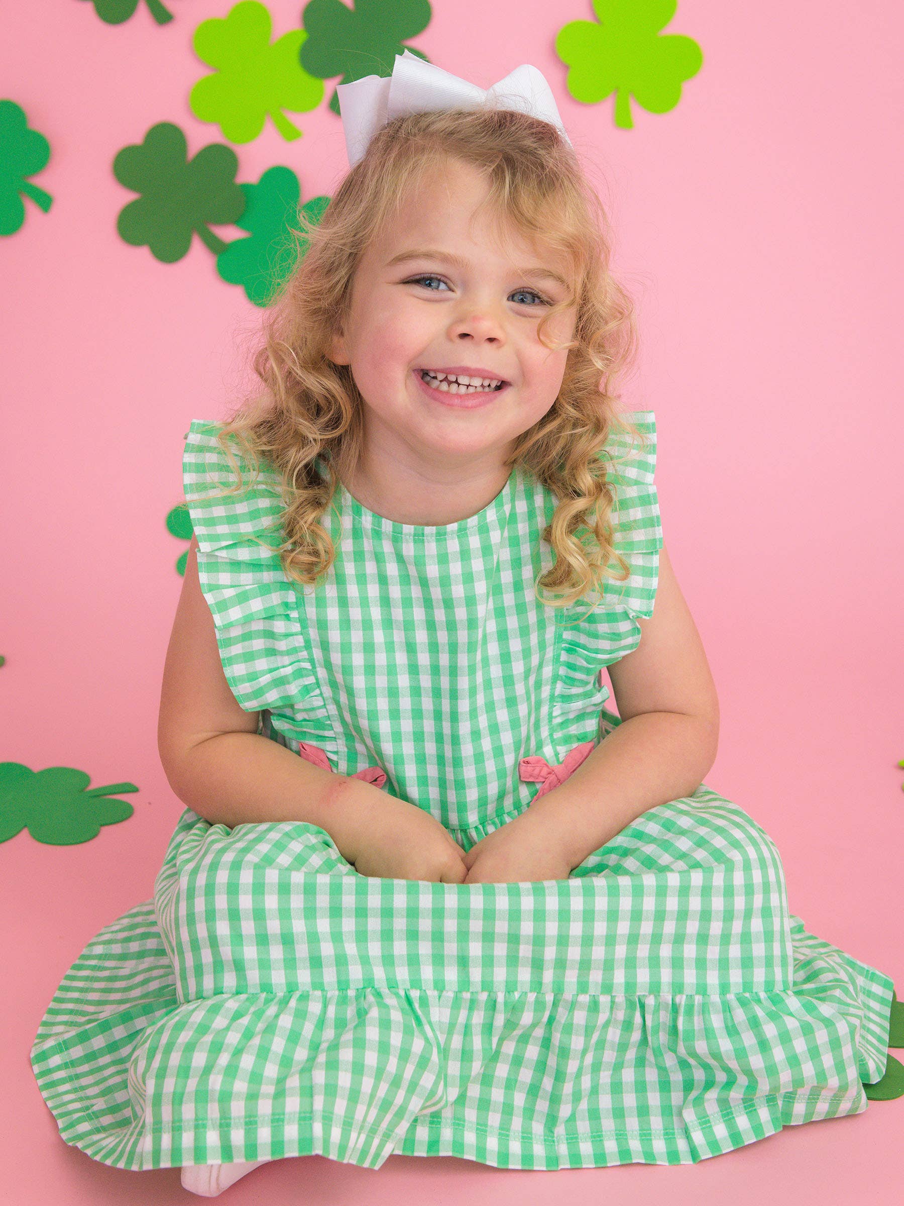 The classic gingham is bright and sweet, perfect for the whole family. Pairs well with Spring Bud Green, Pink, White, Clover Bows & Wishes, Clover Field.