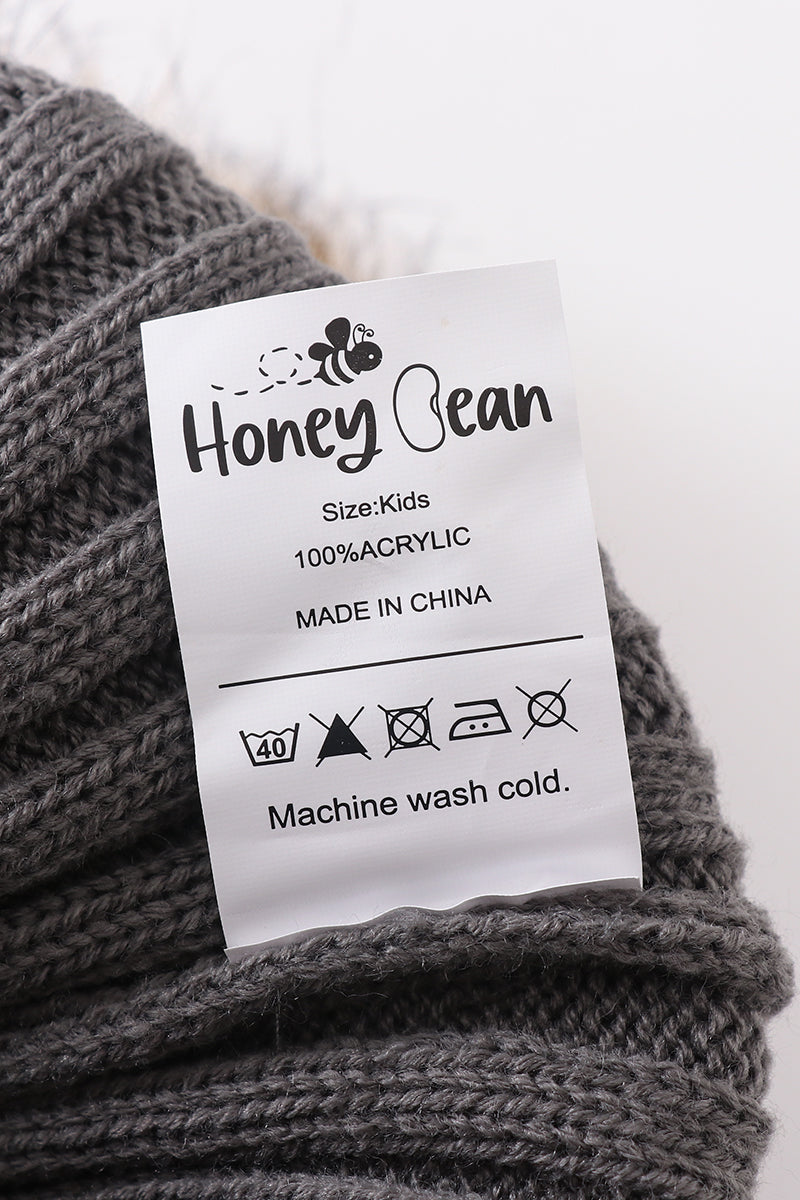 Grey knit pom pom beanie hat baby toddler adult