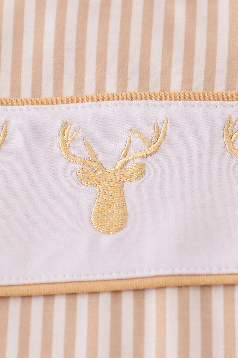 Khaki deer embroidery stripe bubble