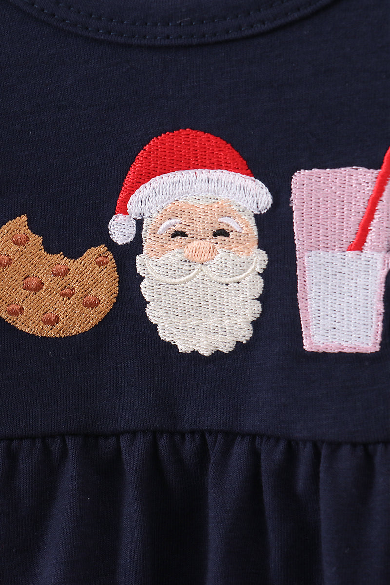 Navy christmas santa cookie milk embroidery ruffle bubble
