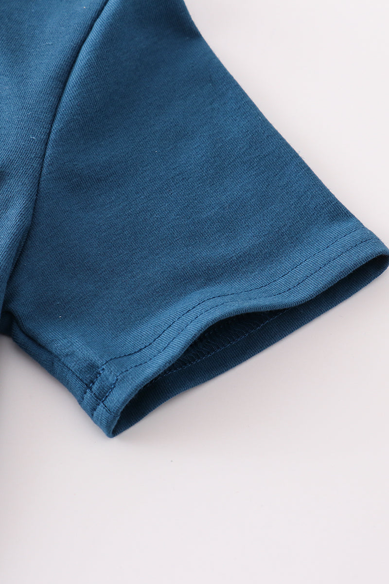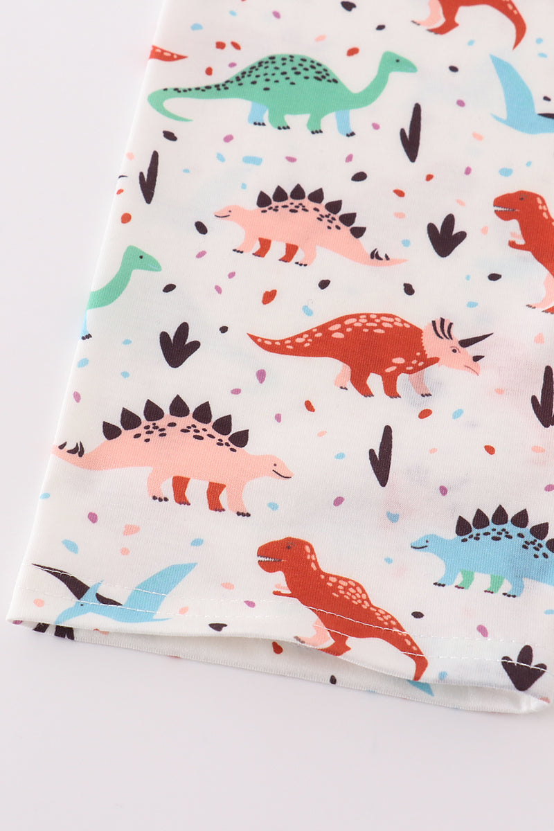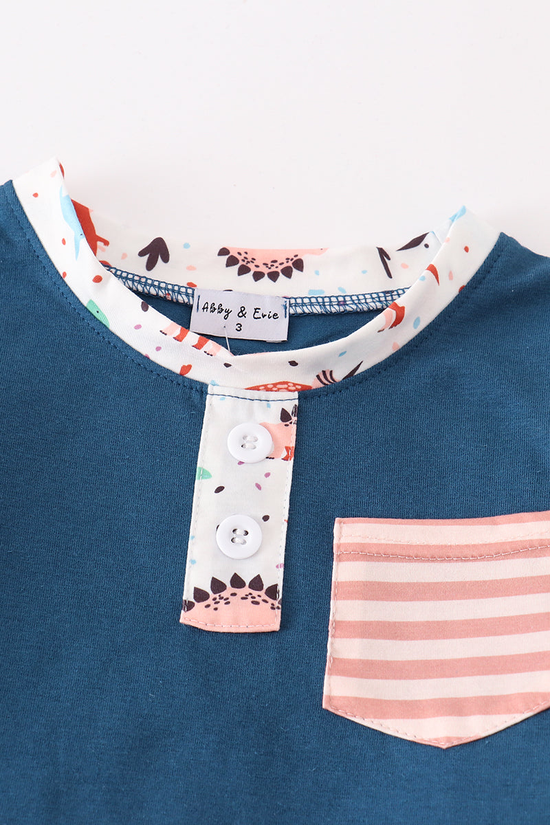 Roar into style with our navy dinosaur print boy set! Featuring a playful pattern of prehistoric creatures, this set is perfect for your little one's adventures. Made with high-quality materials for comfort and durability. (No bones about it- it's dino-mite!)