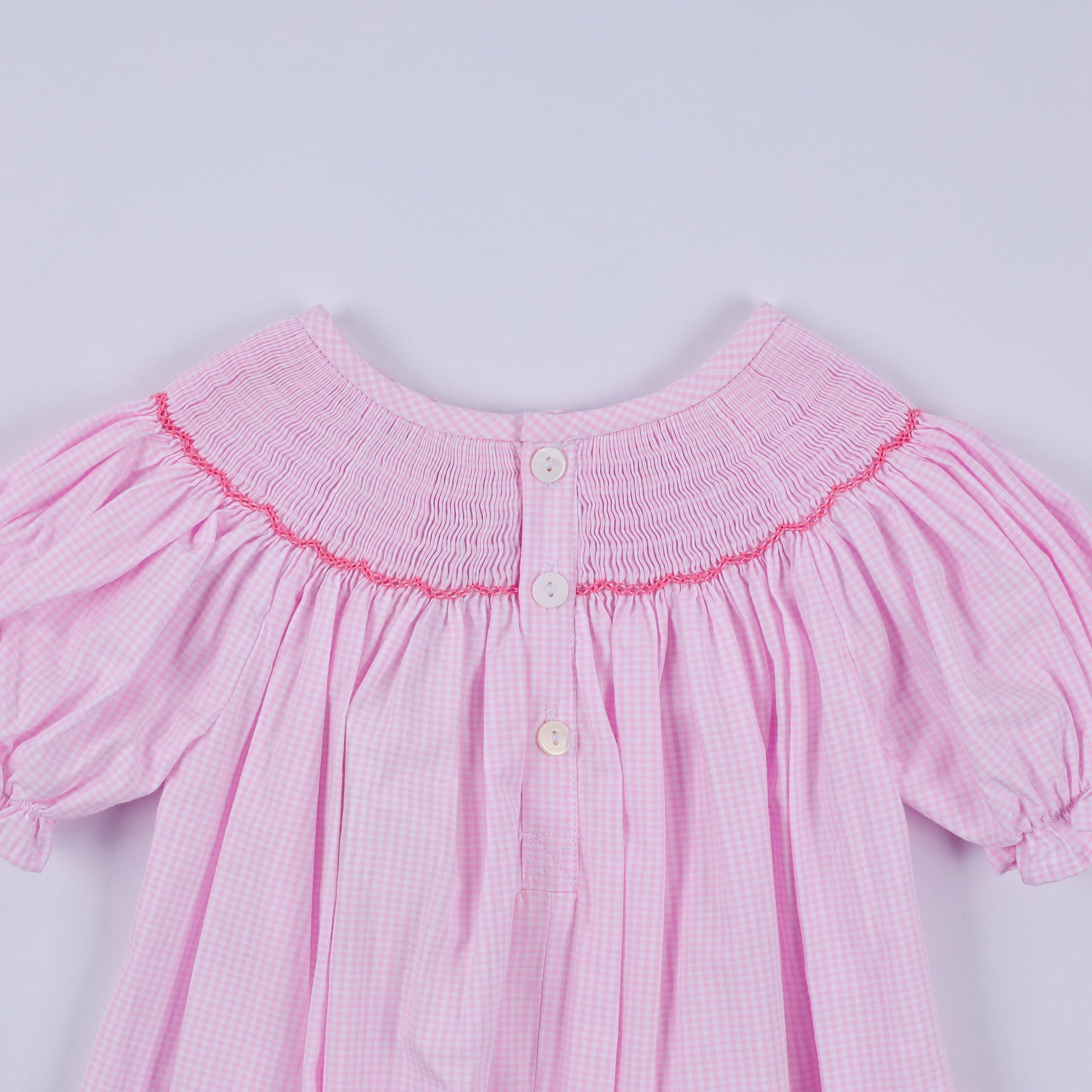 Deck the halls in festive style with this adorable pink Christmas tree hand-smocked ruffle romper! Perfect for holiday photos and celebrations, this charming one-piece features delicate hand-smocking details and playful ruffles that twirl with every move. The cheerful pink hue paired with classic Christmas tree motifs creates a whimsical look that captures the magic of the season. Comfortable and cute, it's the ideal choice for little ones who want to spread holiday cheer in style.
