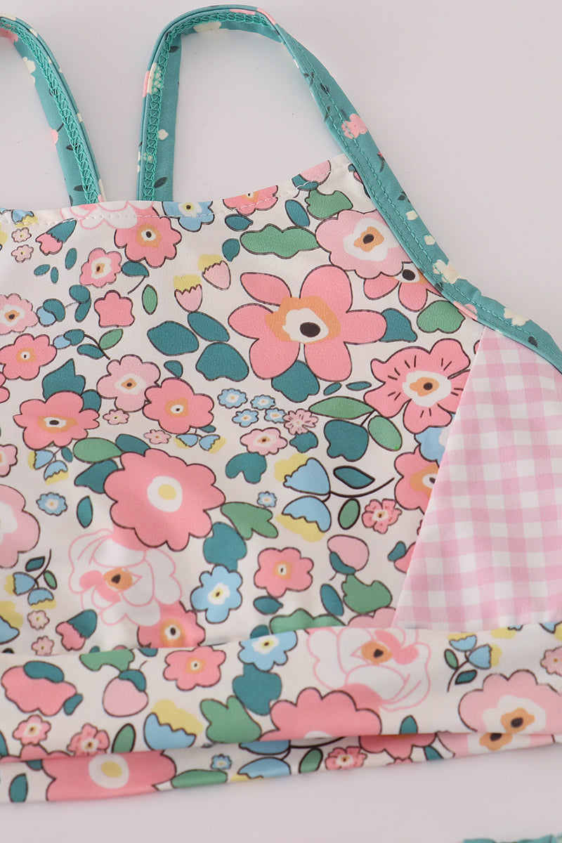 Embrace your workout with this playful pink floral print 2-piece set, featuring a comfy tank and matching leggings. Designed to move with you, it adds a fun pop of color and style to your activewear collection. Perfect for yoga, jogging, or just feeling fabulous on the go!