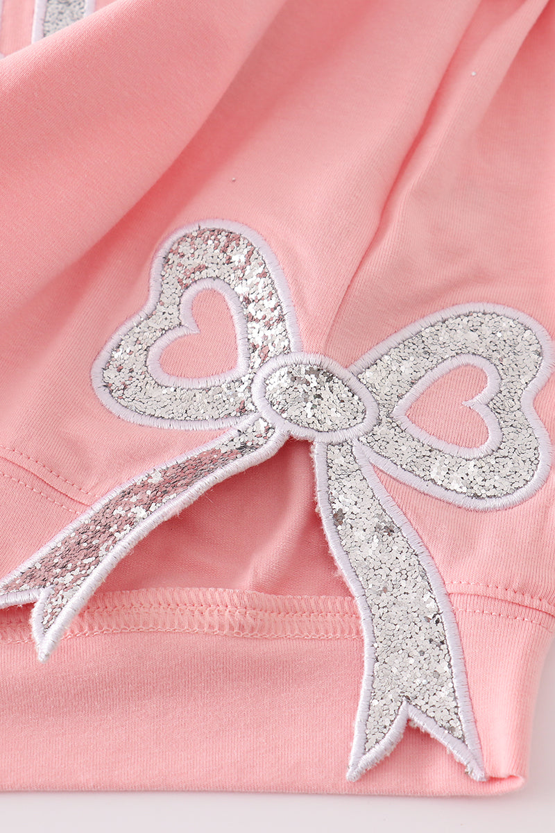 Add a touch of sparkle to your day with this Pink MINI bow glitter mom & me top! Perfect for matching moments, its glittery bow detail brings fun and charm to any outfit. Soft and comfy, it’s designed for playful twinning that brightens both your style and your smiles.