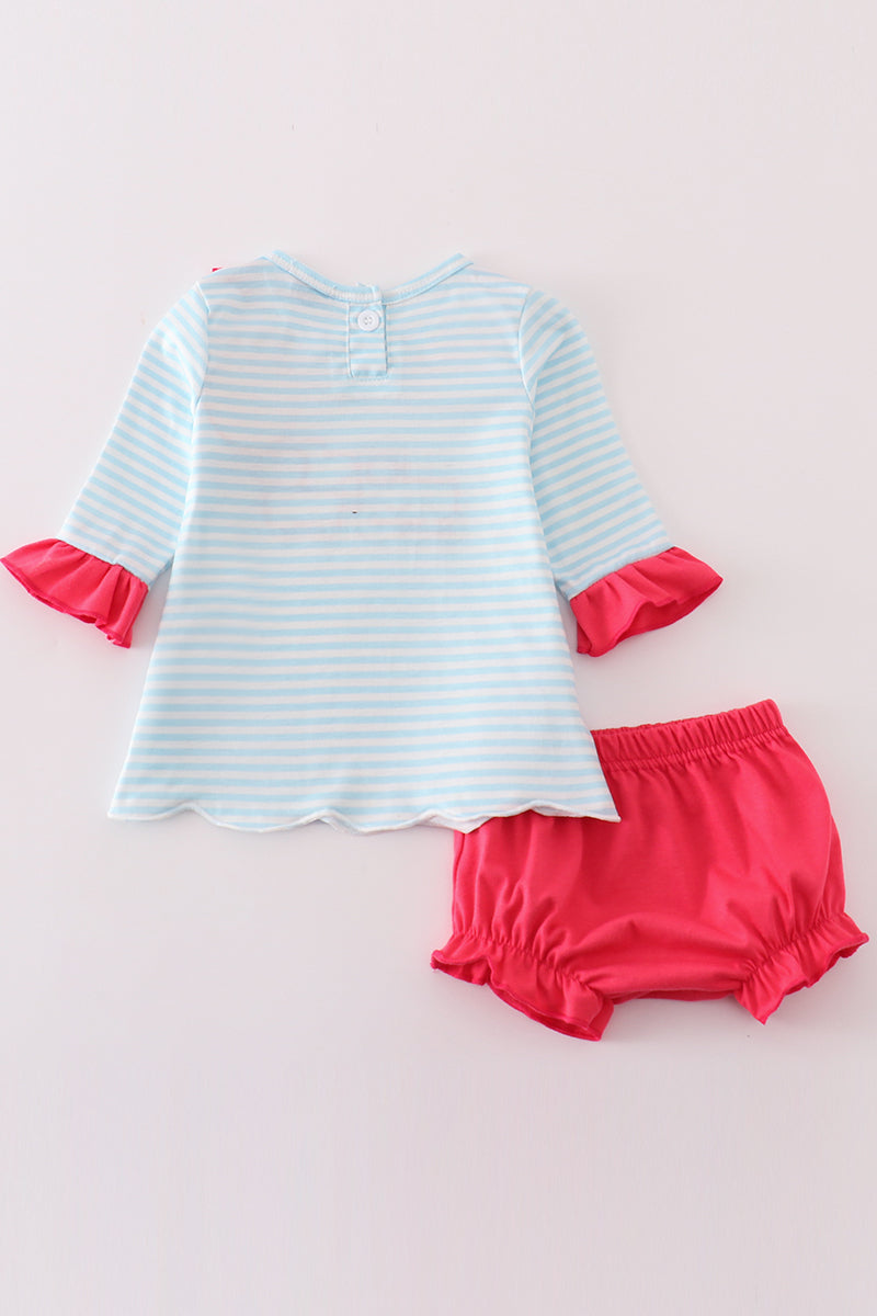 Pink truck heart applique girl bloomer set