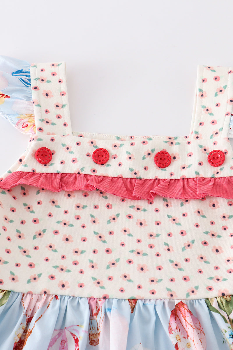 Platinum balloon print floral flutter trim dress