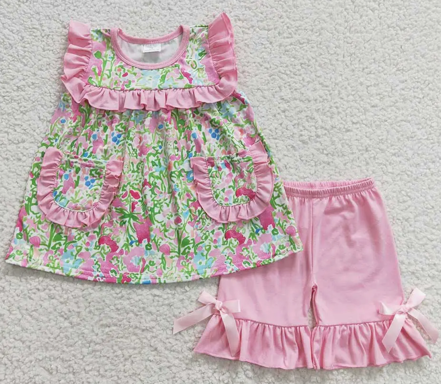 *Pre-Order: Girls Pink Green Flowers Clothes Sets