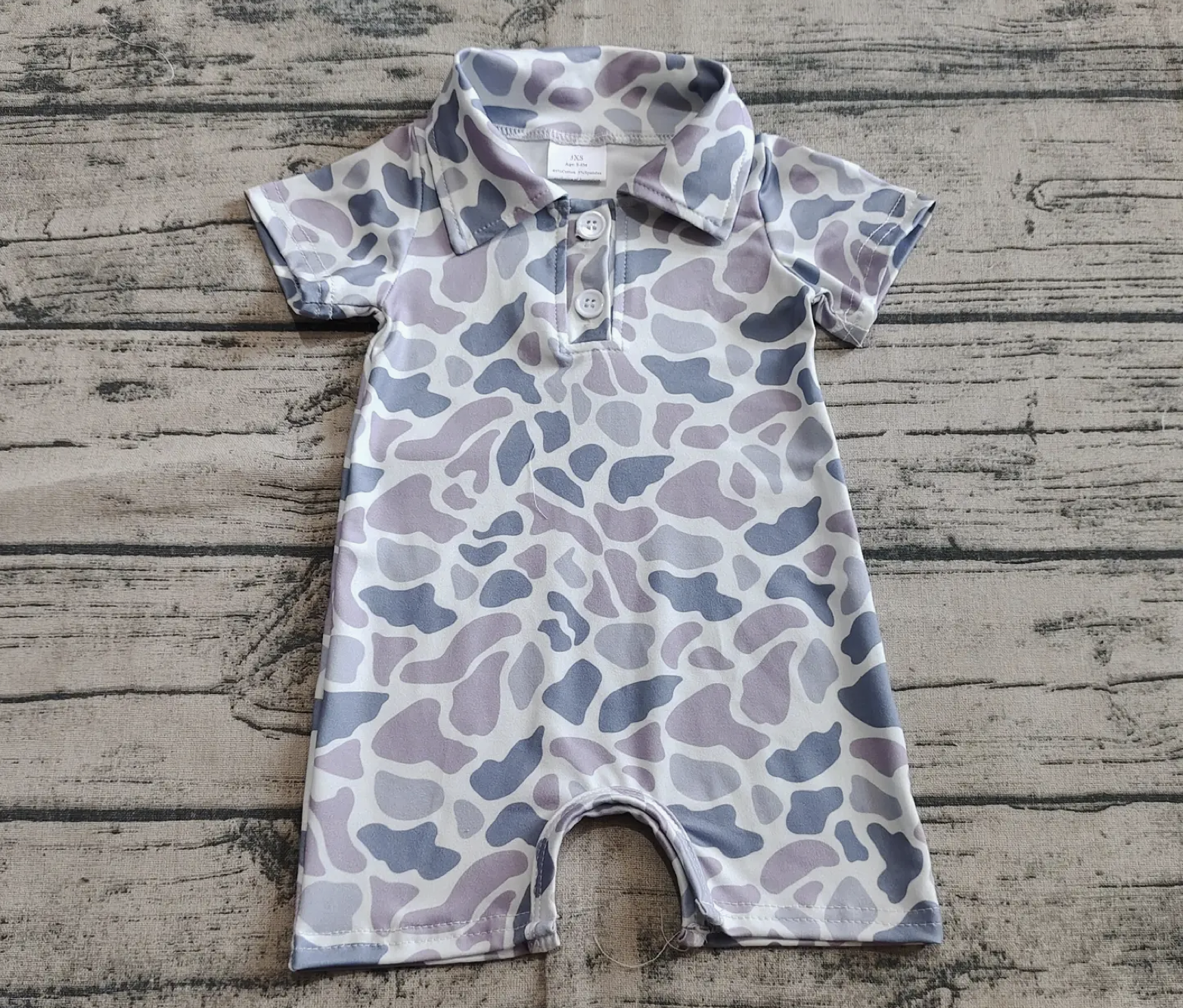 *Pre-Order: Infant Boys Short Sleeves Gray Camo Button Rompers