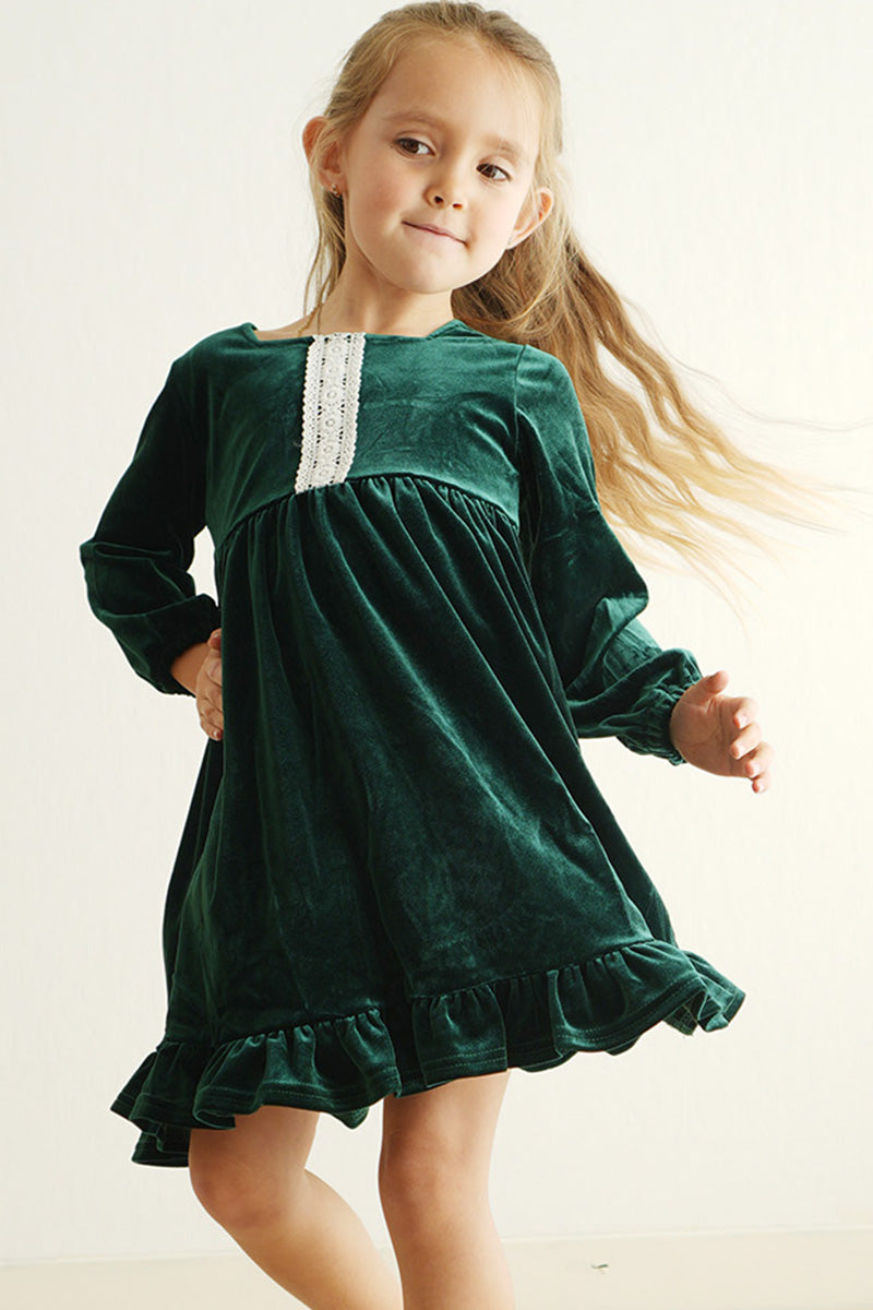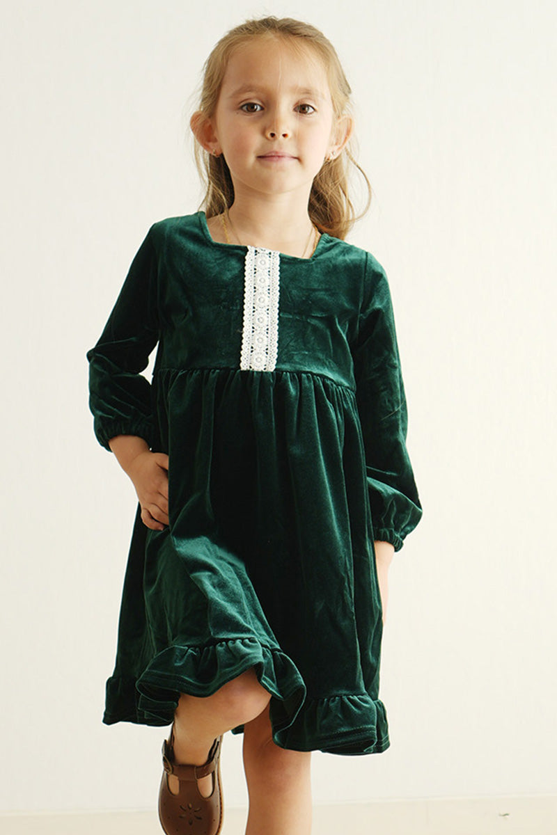 Get ready to dazzle with our Forest Velvet Lace Girl Dress. Made with luxurious forest velvet and delicate lace, this dress will elevate any occasion. Perfect for little fashionistas who want to stand out (and be comfortable)!