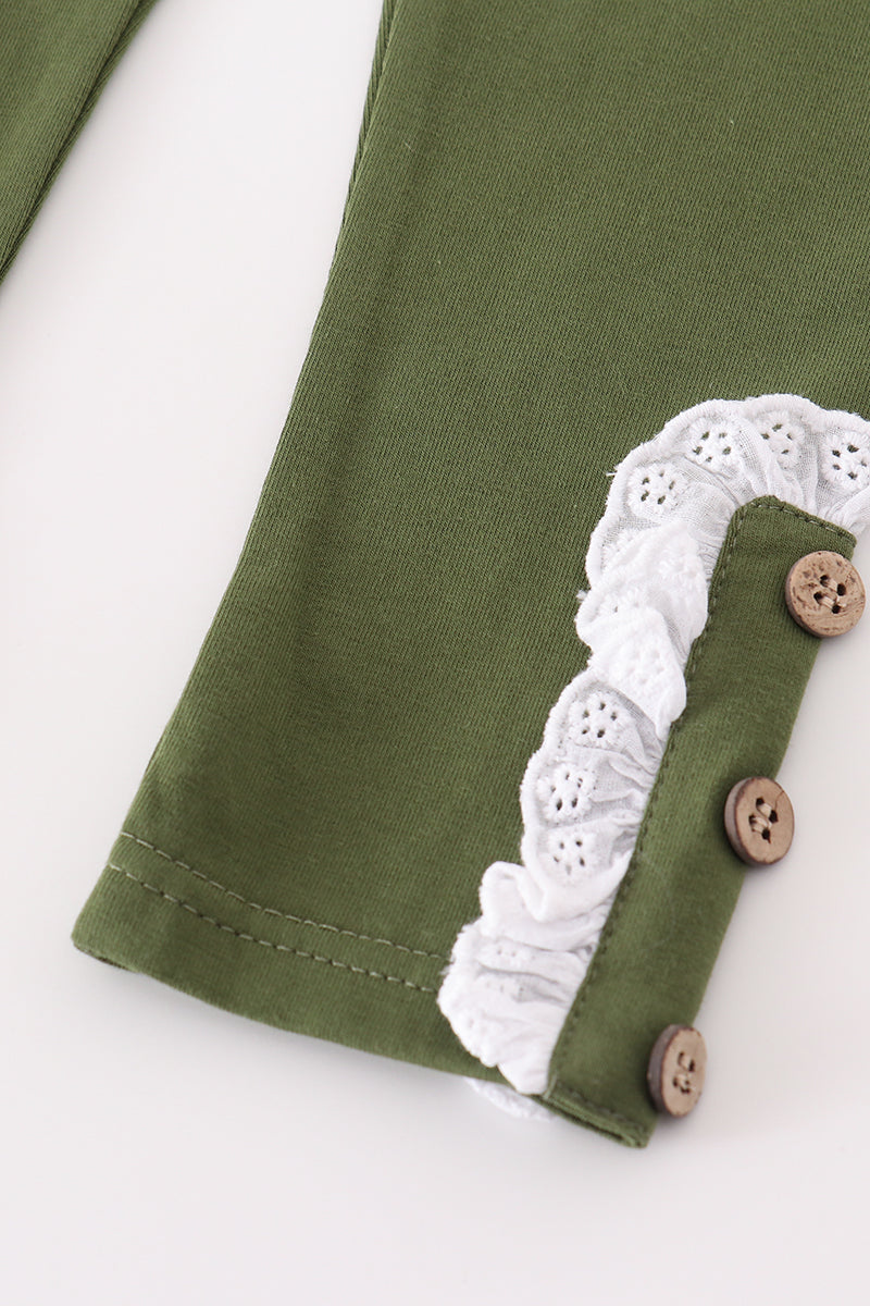 Brighten up your little girl's wardrobe with our Green Floral Print Swiss Dot set! Featuring a playful green floral print on a delicate swiss dot fabric, this set is perfect for adding a touch of whimsy to any outfit. Made with quality materials for all-day comfort and style.