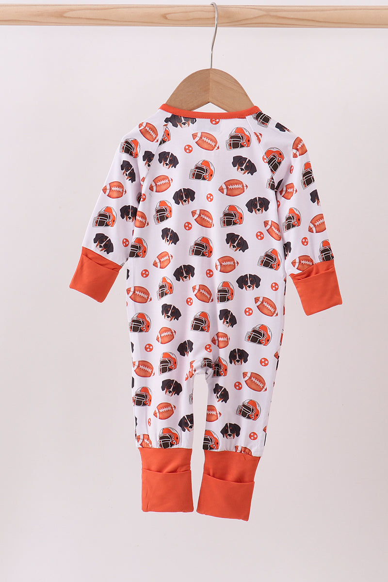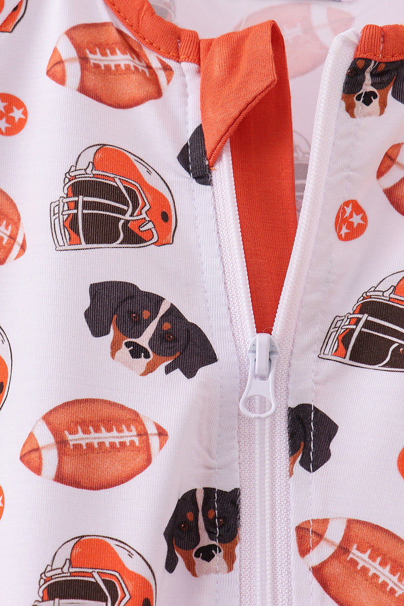 Celebrate sunny days with this premium orange Tennessee print romper made from soft, breathable bamboo fabric. Designed for comfort and style, it's perfect for playful adventures or relaxing afternoons. The vibrant orange hue and unique Tennessee print add a cheerful pop to any outfit, making it a fun wardrobe favorite. Easy to wear and gentle on the skin, this romper brings a touch of southern charm to your everyday fun.
