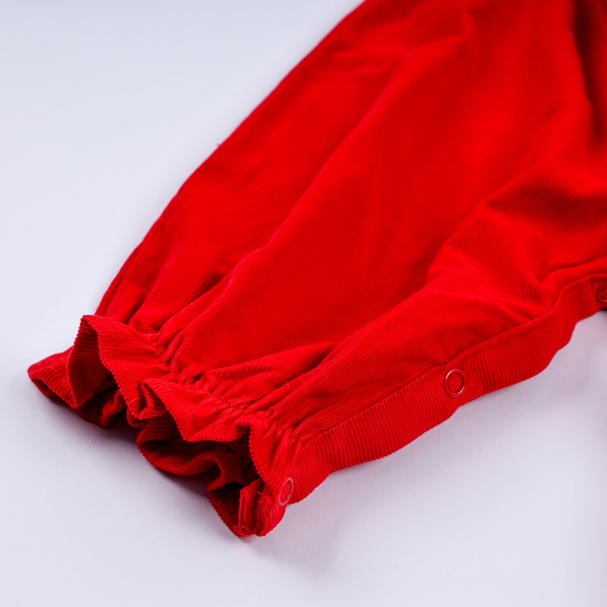 Deck the halls in festive style with this charming red romper, featuring hand-smocked details and a cheerful Christmas tree design. Perfect for holiday photos and celebrations, this playful piece combines comfort with seasonal cheer. The smocked bodice adds a touch of vintage-inspired elegance, while the vibrant red hue and festive motif make it an instant favorite. Ideal for little ones who love the magic of the season.