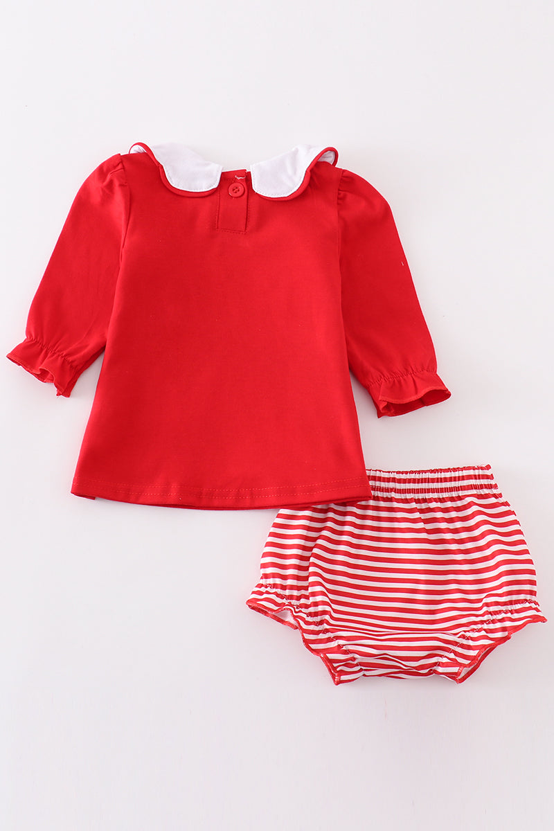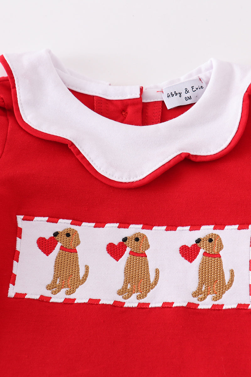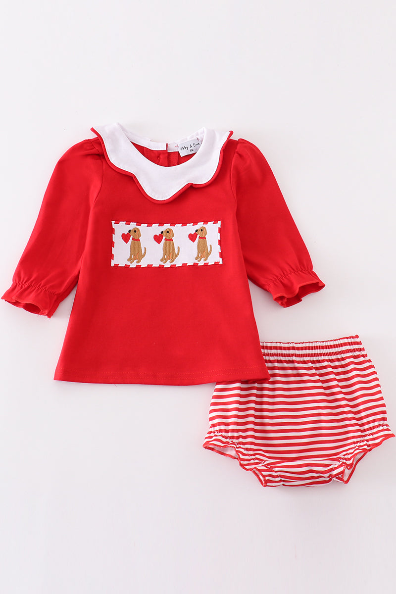 Red valentine puppy embroidery girl bloomer set
