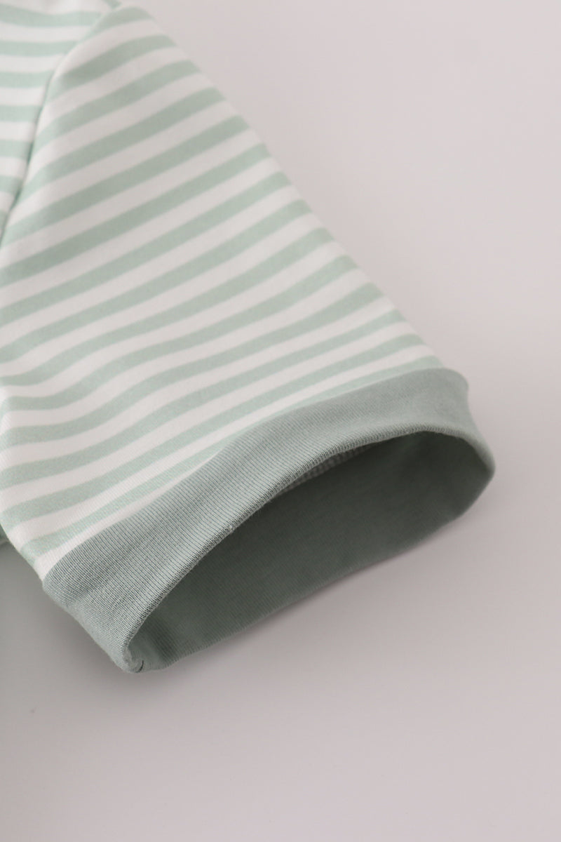 Add a touch of whimsy to your wardrobe with the Sage Stripe French Knot Top. Featuring charming stripes and delicate French knot detailing, this playful piece brings effortless style and a fun twist to your everyday look. Perfect for brightening up any outfit with a splash of personality.