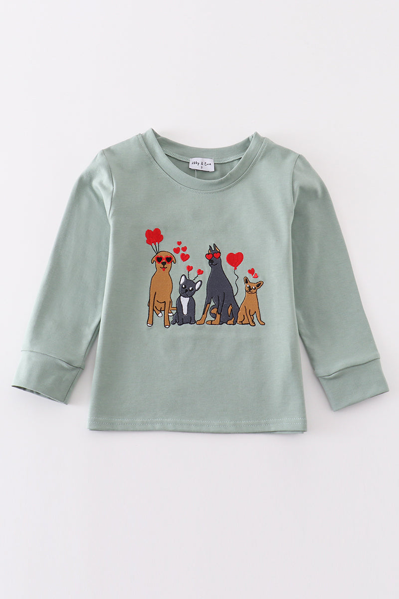 Sage valentine puppy heart embroidery boy top