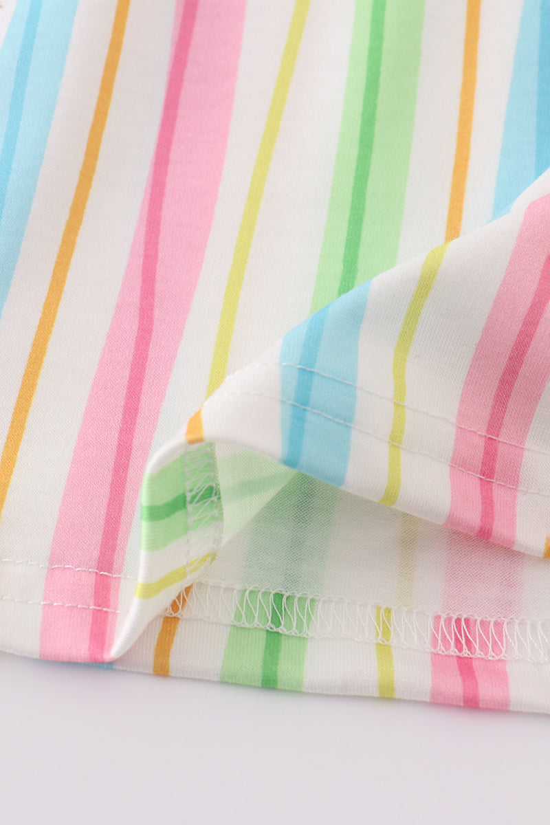 Bring some whimsy to your wardrobe with our Stripe Dr. Seuss embroidery smocked dress. The playful combination of stripes and Dr. Seuss characters will make you stand out wherever you go. Plus, the smocked design ensures a comfortable and flattering fit. (Who needs a waistband anyway?!) Perfect for a fun and carefree day out. (No green eggs or ham required.)