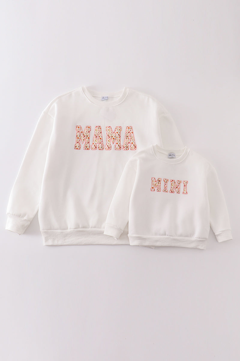 White MAMA&MINI applique fleece mom&me sweatshirt